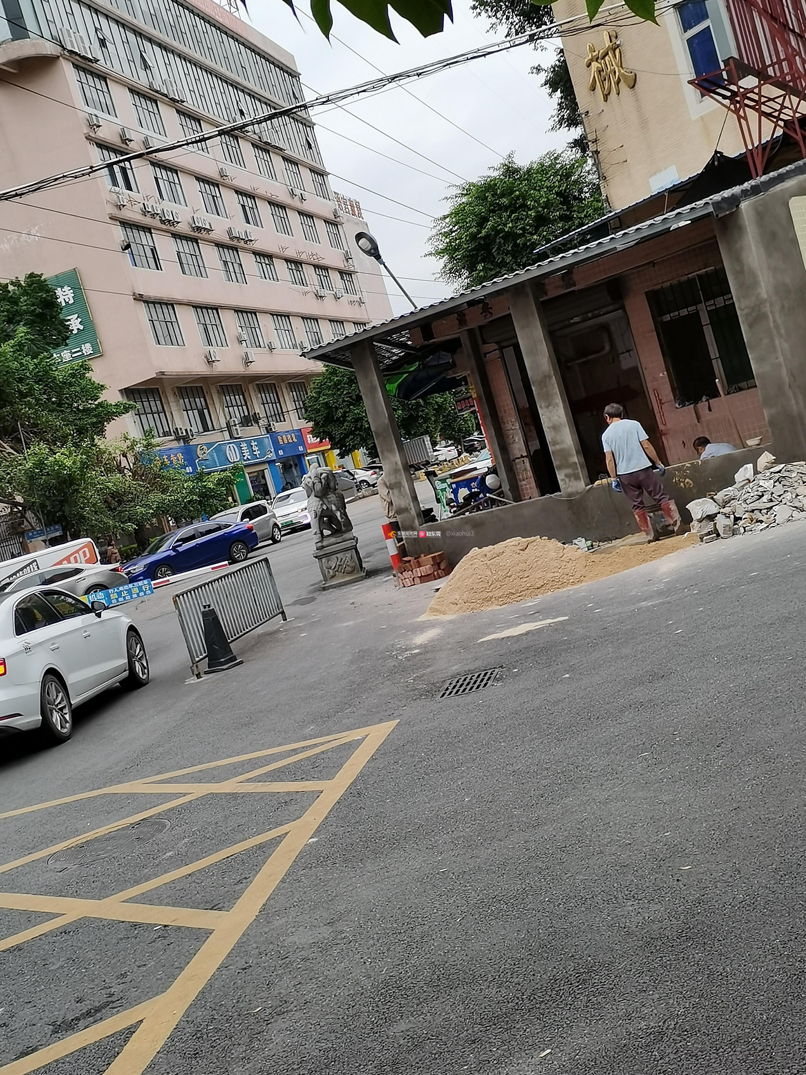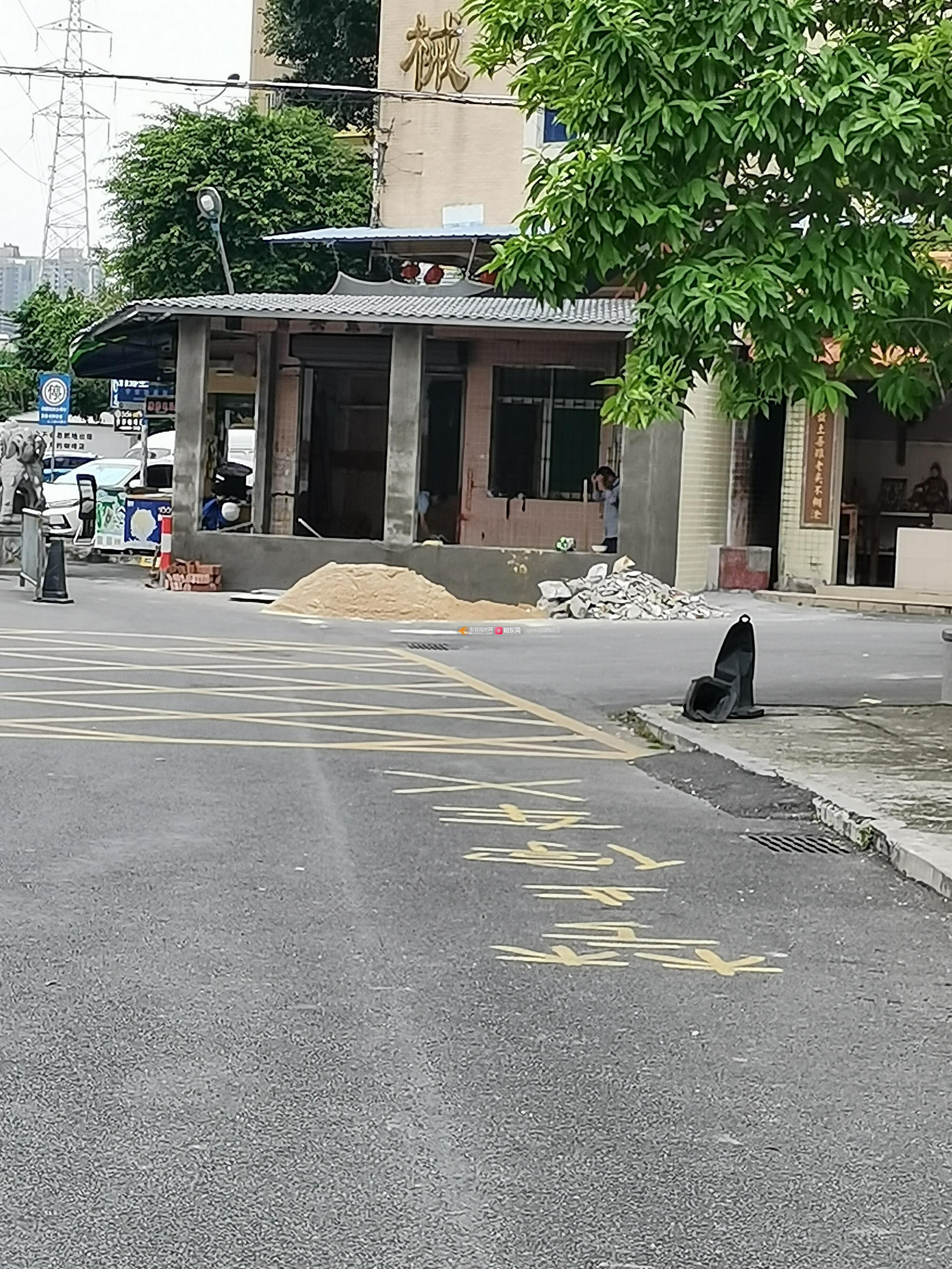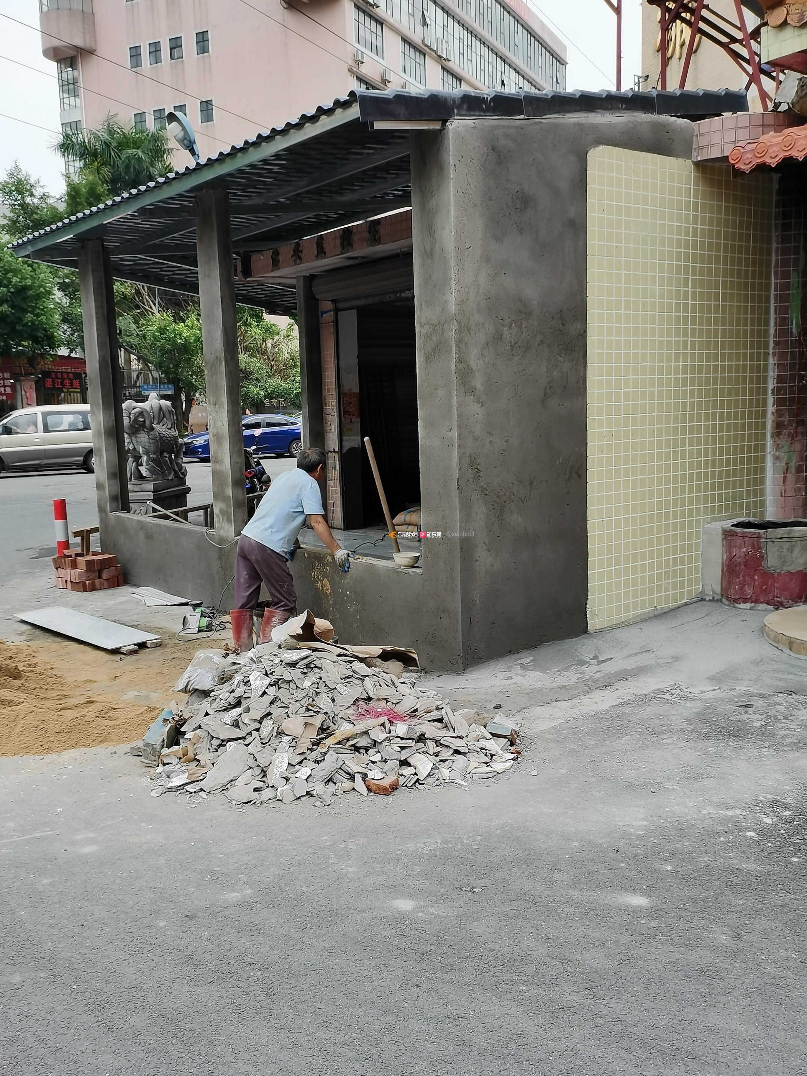 村里的厕所外面用砖头加建,用作商铺,违法占用马路。