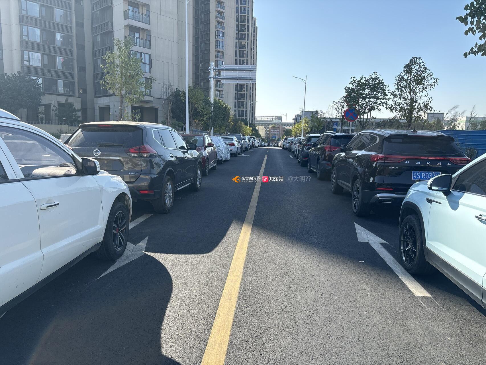 新修的的路就变成了停车场,车辆无法双车交汇