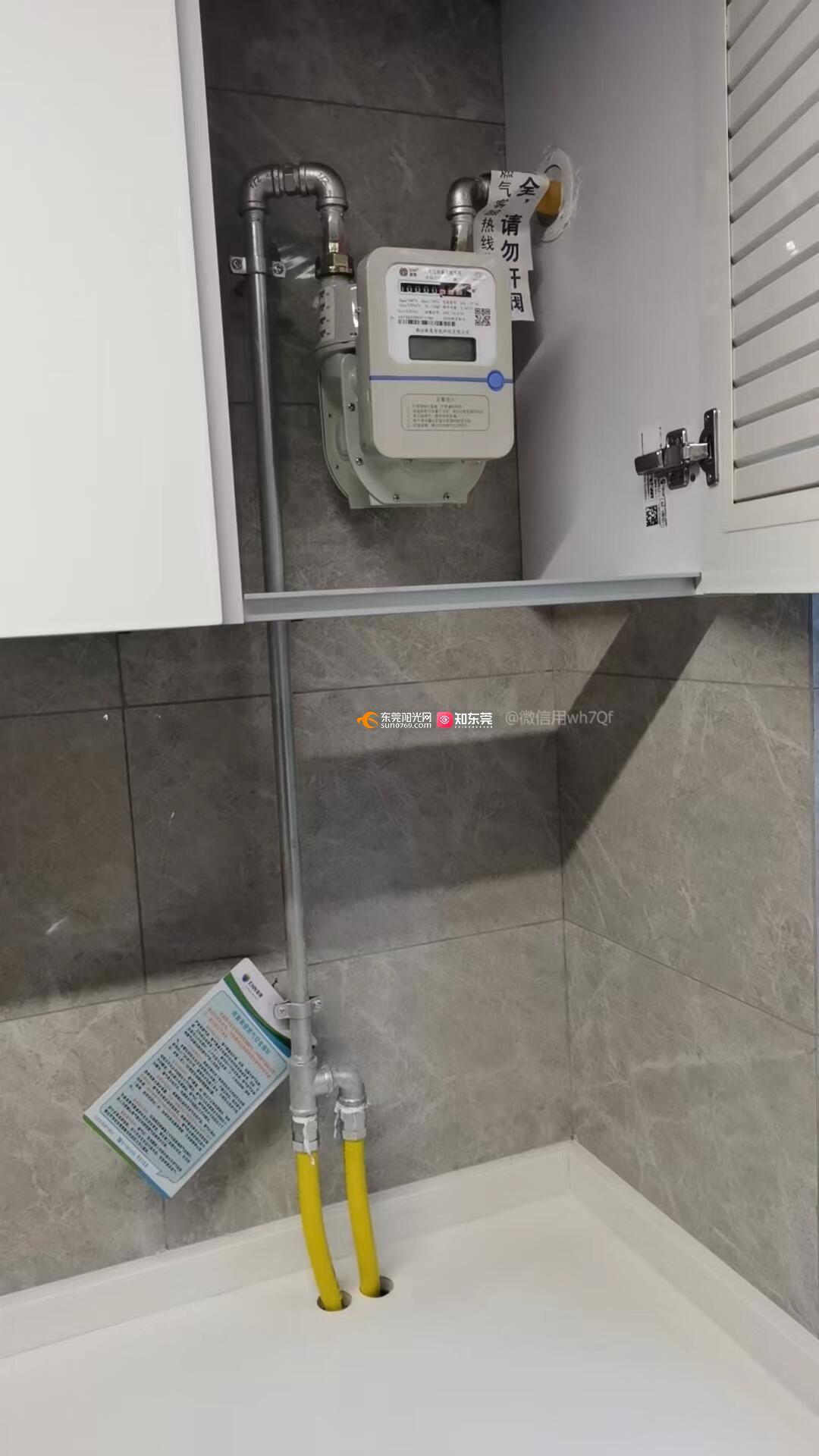 燃气暖管出现于厨房操作平台,易导致:1、安全问题:平台日常需要使用刀具,并且刀具和燃气暖管的距离小于20公分,刀具极其误伤到燃气暖管,极度容易出现重大安全事故;2、虚假宣传:燃气管道及燃气表设计与样板间严重不符,导致空间利用率下降。