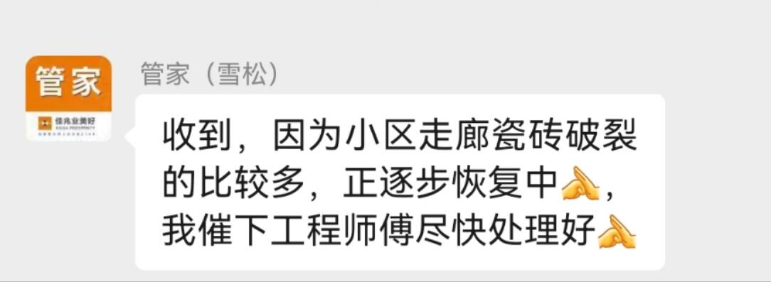 两个月了修不好一个地板,每次问有没有具体时间安排维修,都是官方回答,时间安排计划都没一个,恳请房管所协助处理无能物业。