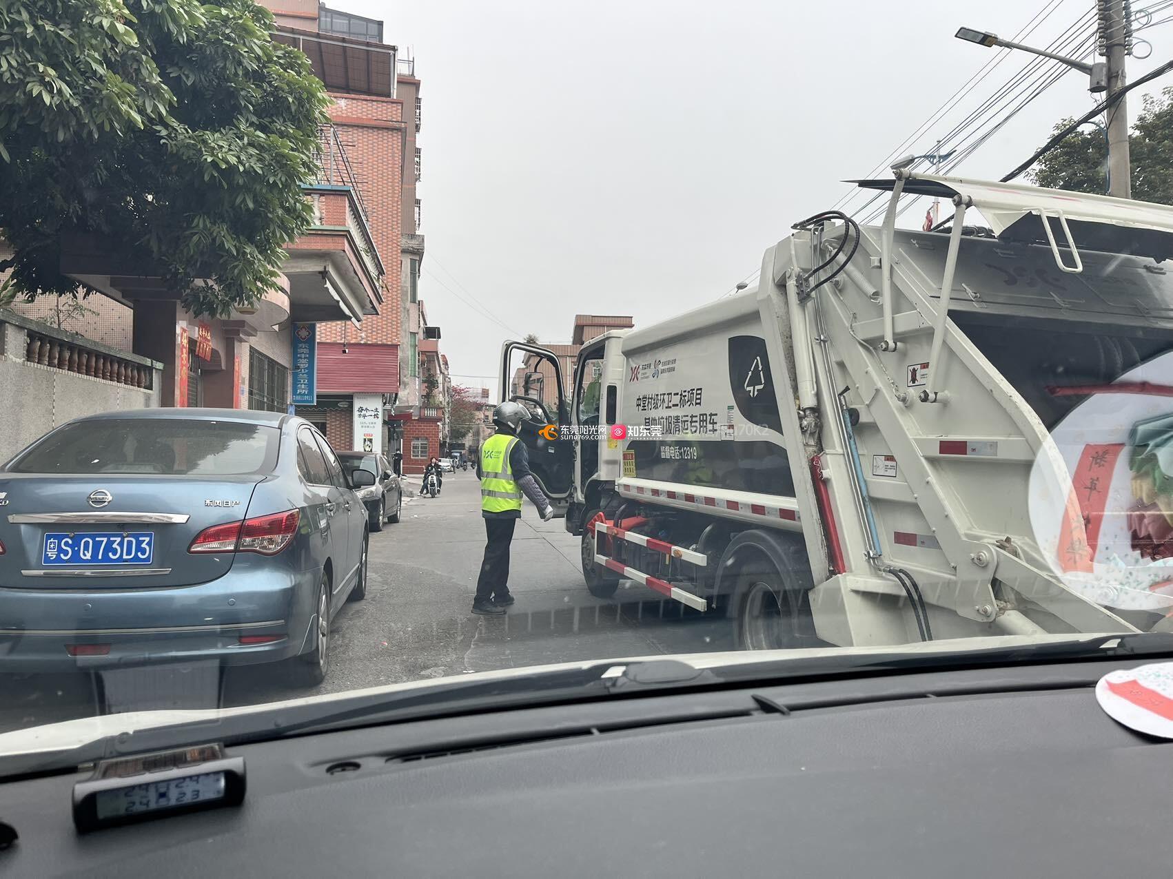 垃圾车收垃圾没顾及交通状况阻挡马路