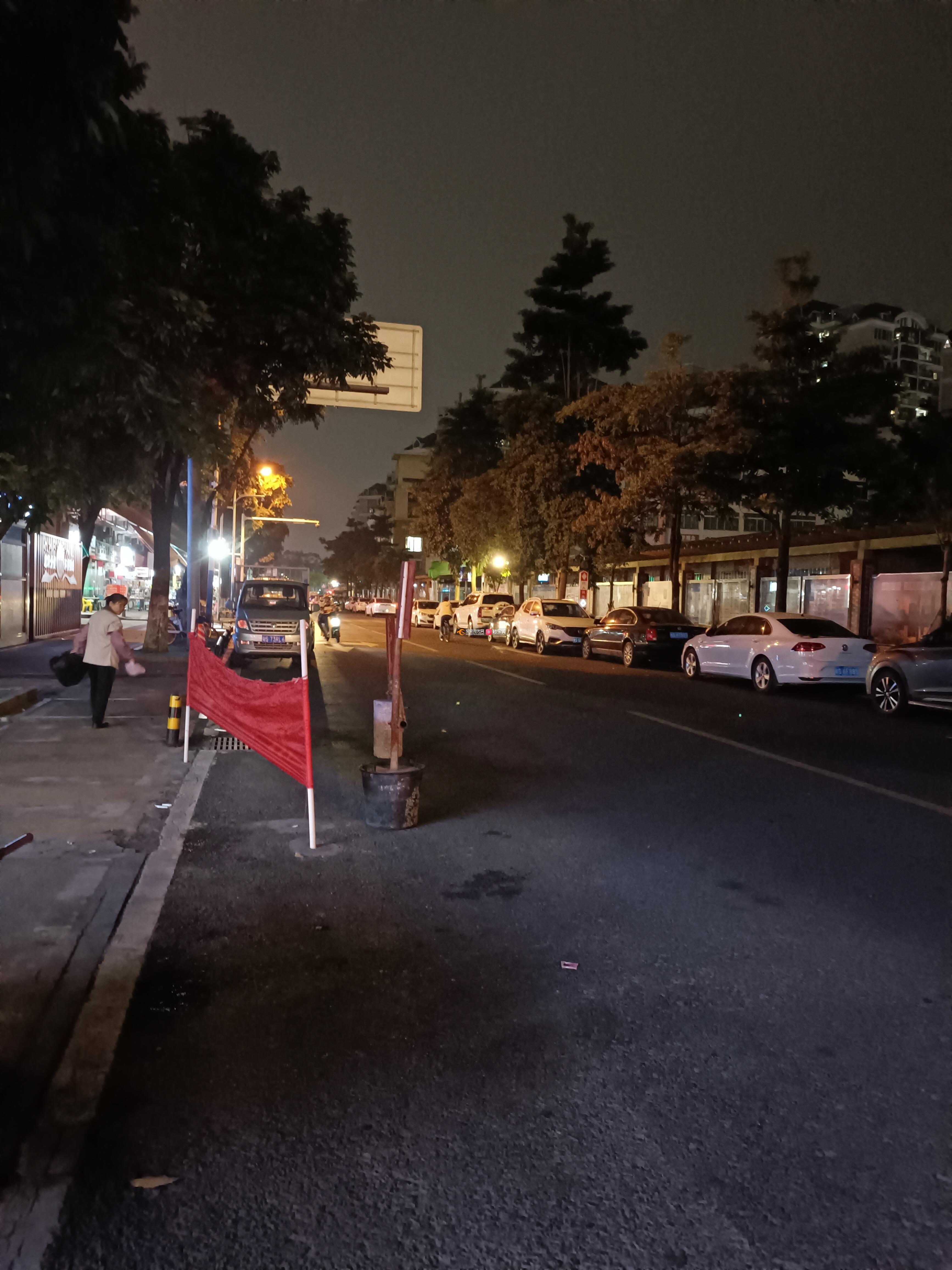 违规使用横幅、水泥石块占用道路空间,且位置位于红绿灯路口,影响车辆行驶。同时晚上没有明显反光标志,容易出安全事故,请及时整治