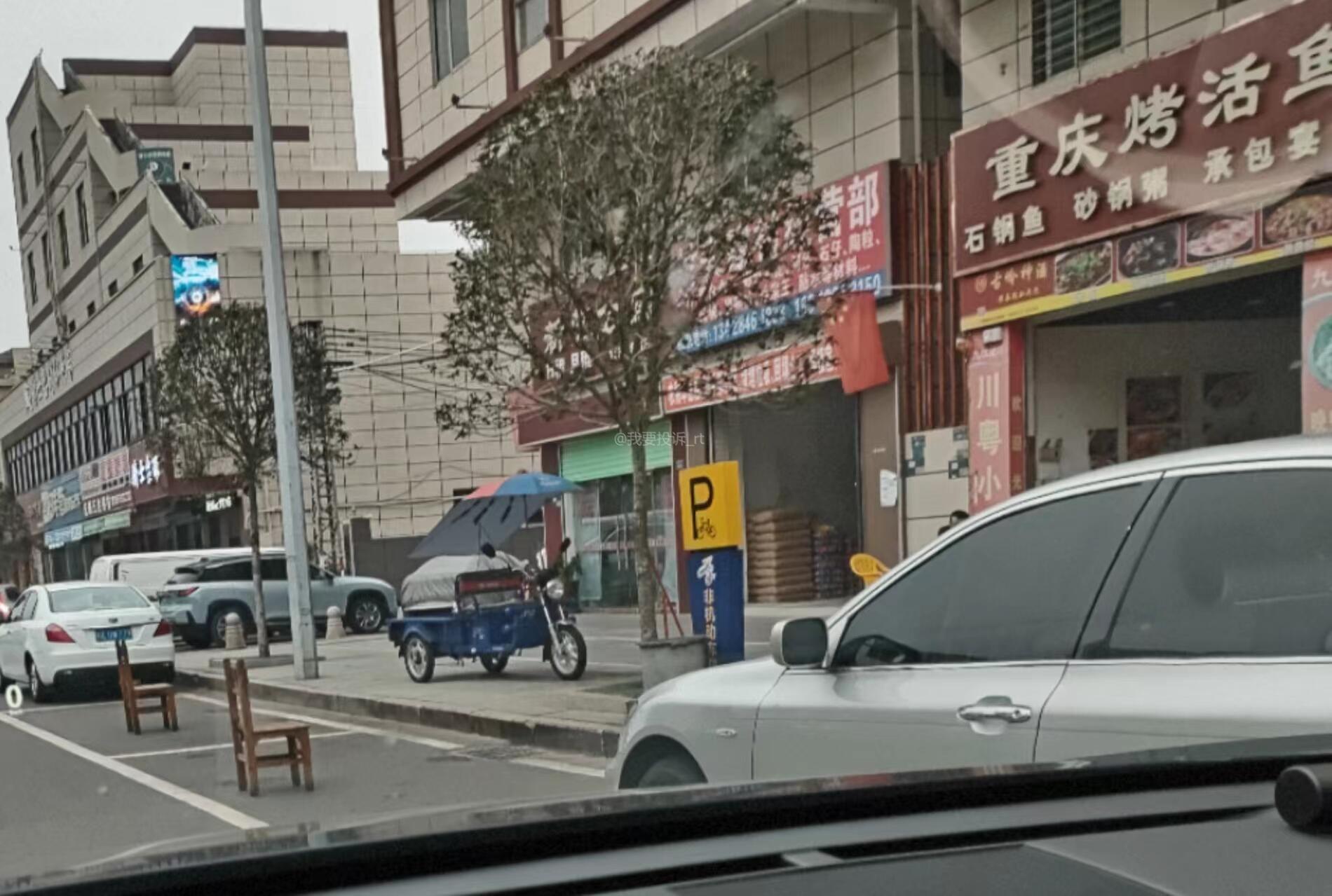 这个重庆烤活鱼每天开门就是凳子霸车位,别人停他门前车位就被他骂,非常恶劣,希望有关部门可以管管,之前新政策还说霸车位罚款,希望落实