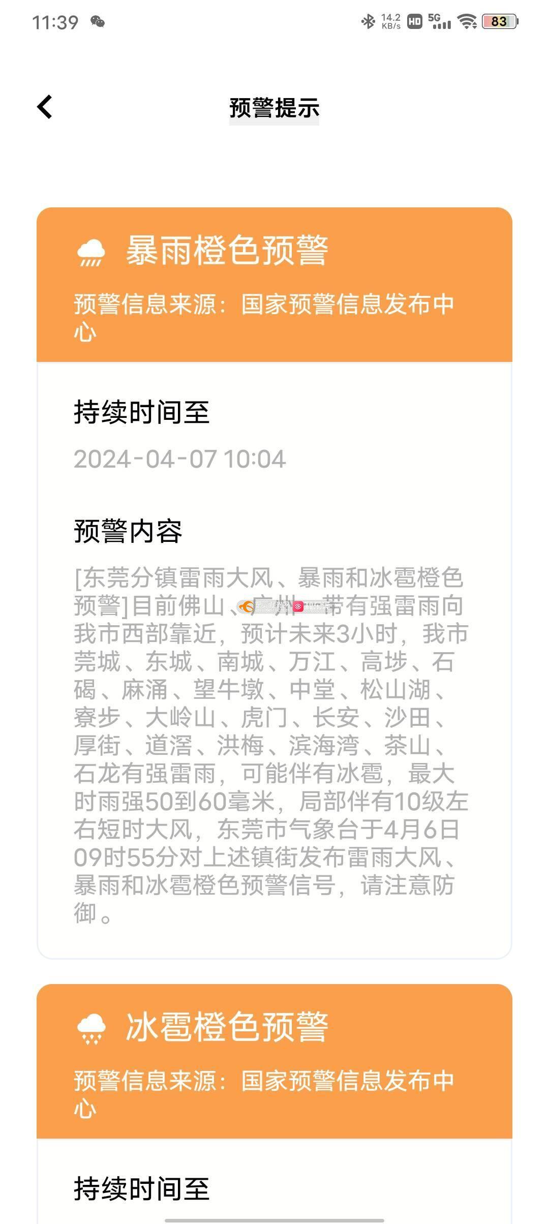 橙色降雨上学不便