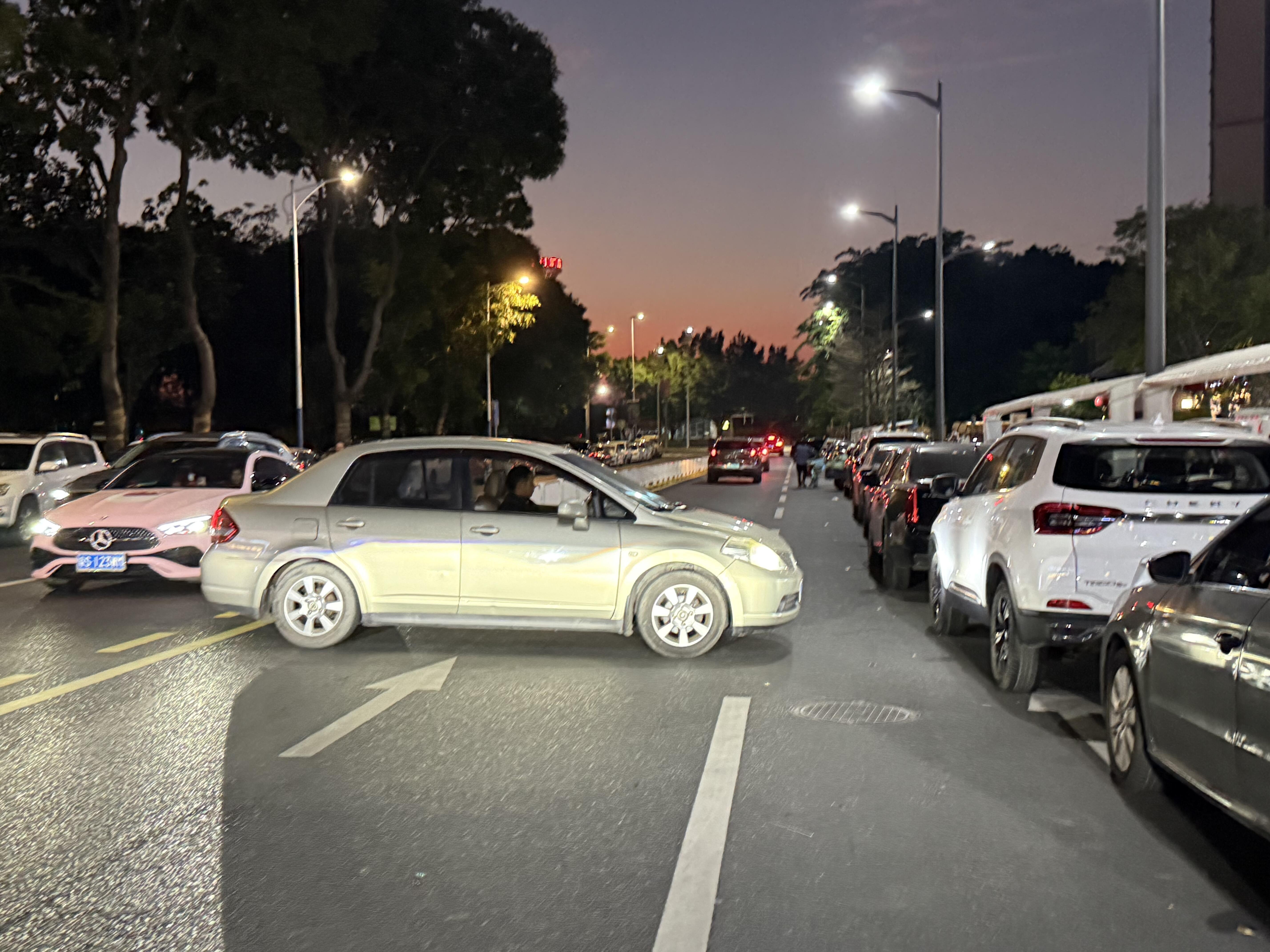 1、交通拥堵与安全隐患:违停车辆占据一股车道,早晚高峰仅剩一股车道通行。小区出入口掉头区域因空间被挤压,车辆无法一次完成转弯,易引发事故。