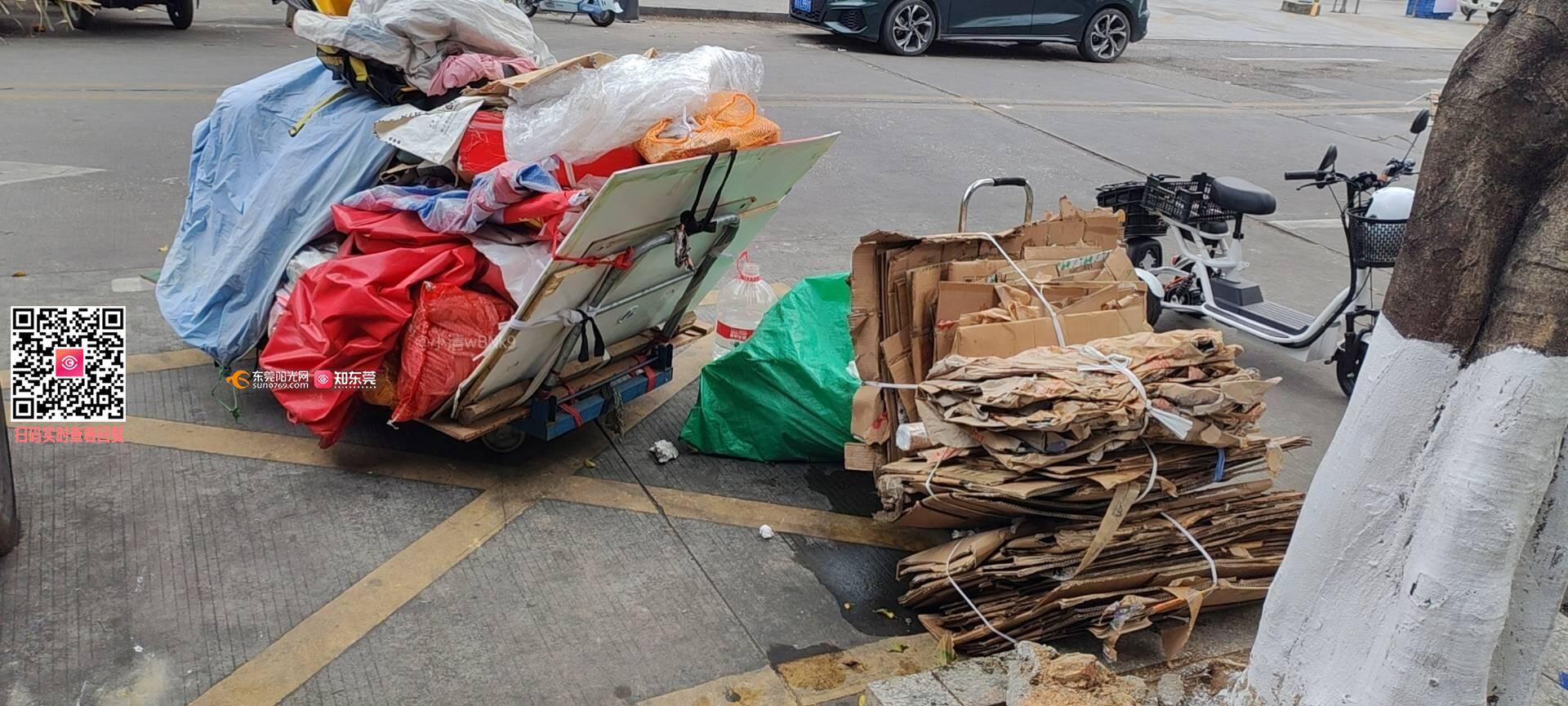 道路被垃圾收废品的人摆放垃圾都不管理