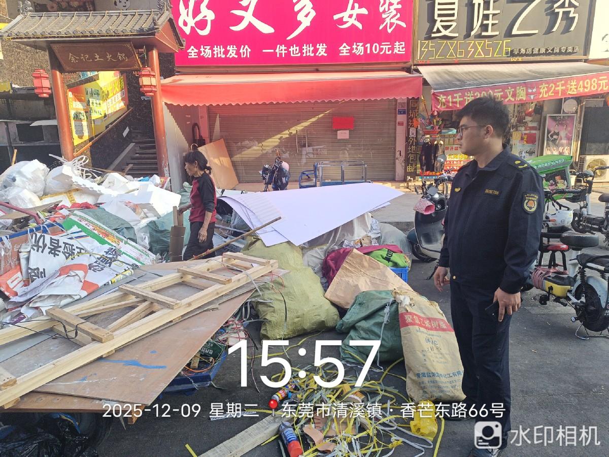 尊敬的市民,您好!您反映的问题已收悉,现回复如下:接到投诉后,东莞市城市管理和综合执法局清溪分局工作人员于2025年12月9日实地巡查处理,现场督促当事人对影响通行的物品进行清理;接下来,东莞市城市管理和综合执法局清溪分局将采取动态巡查等方式加强巡查监管。感谢您对城市管理工作的理解和支持。