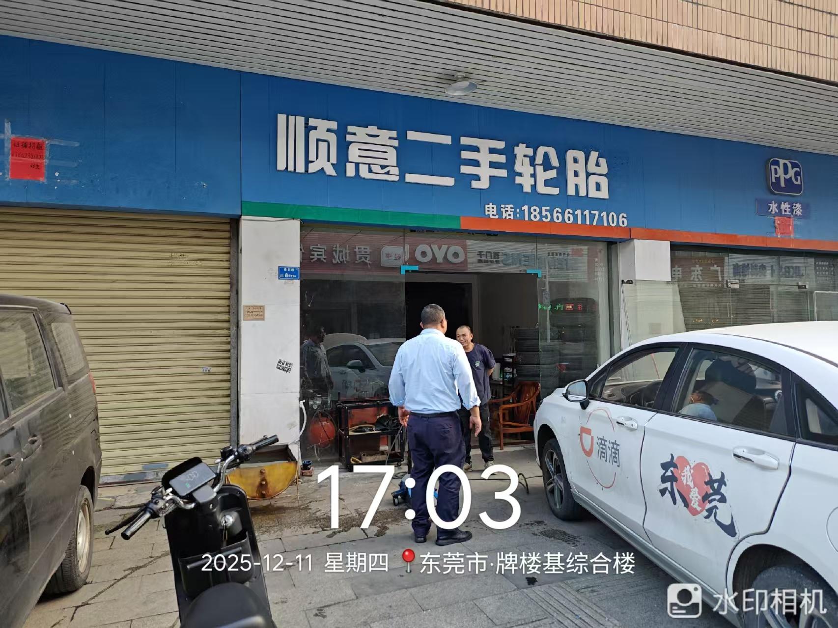 东莞万江泰新路顺意二手轮胎店每天发出很大的噪音,经常被吓到,希望有关部门处理一下晚上12点还发出特别大的噪音,声音太吓人了,是汽车补轮胎的风炮声,还有空压机的噪音,希望有关部门处理一下