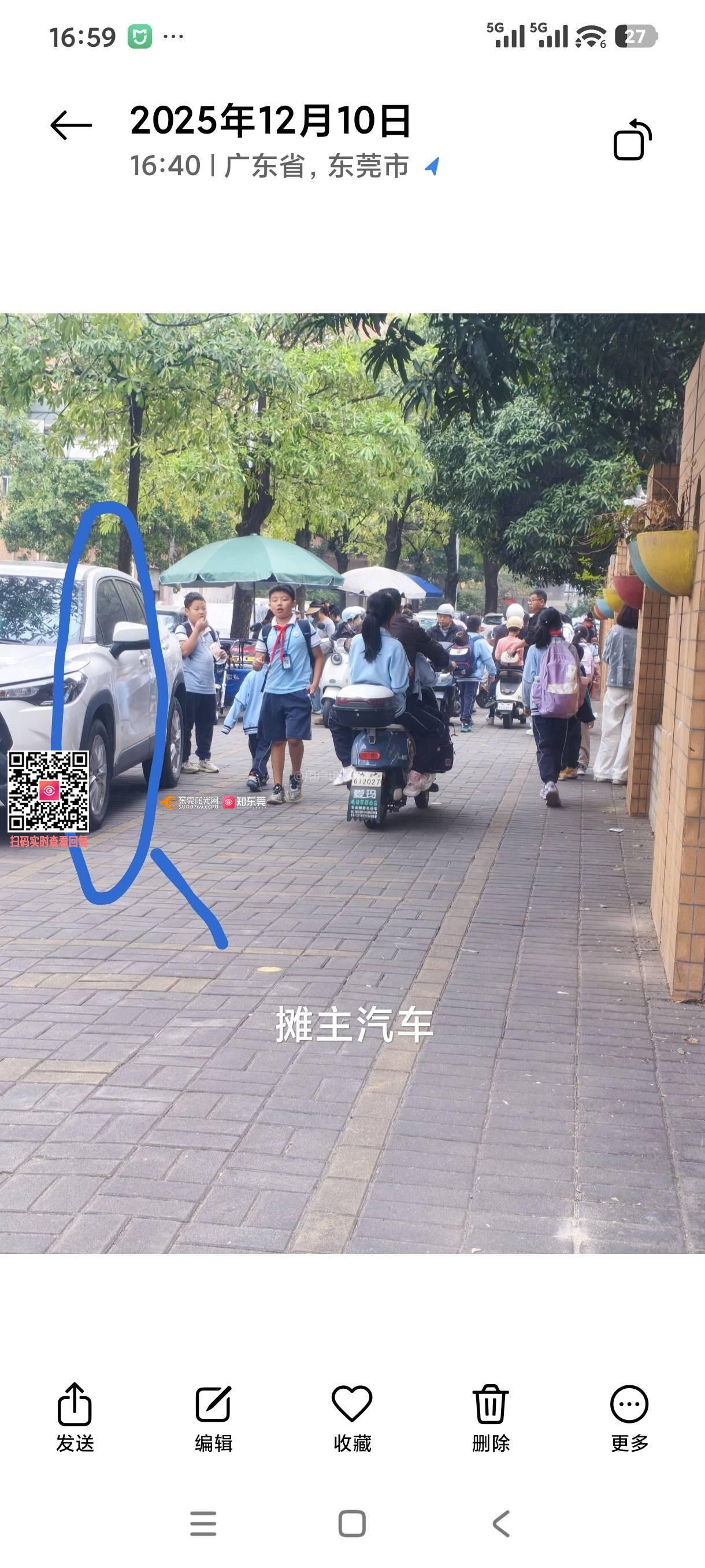 石碣实验小学门口往南方向,新星路。到处乱摆乱买,好多汽车停上人行道路。