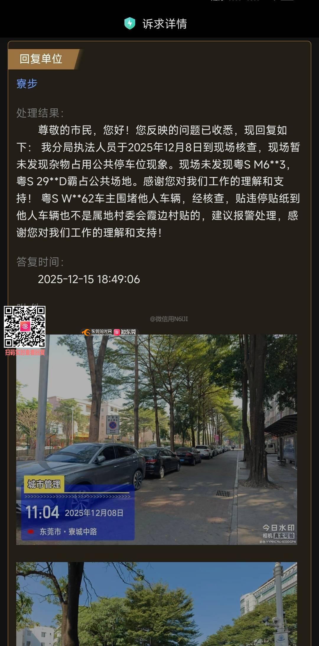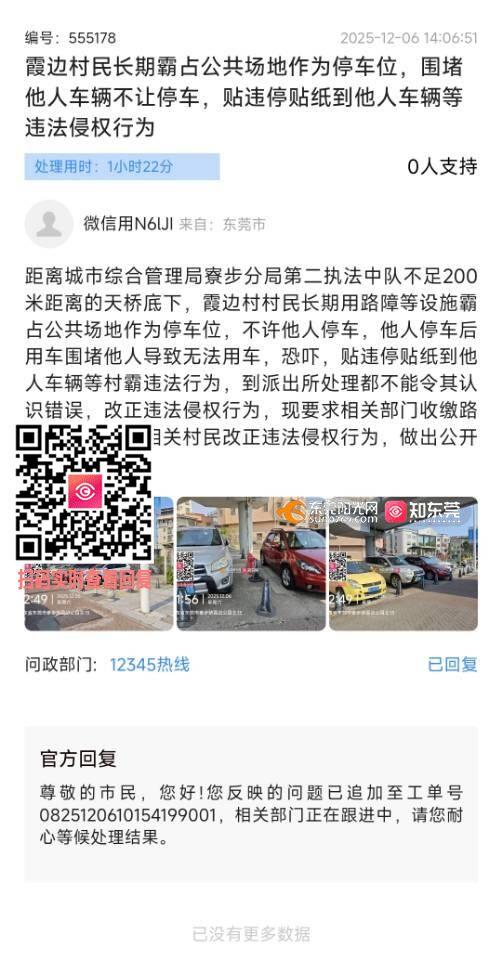 投诉城管纵容霞边村民长期霸占公共场地作为停车位,助长社会歪风邪气,对市民的反应的问题敷衍了事