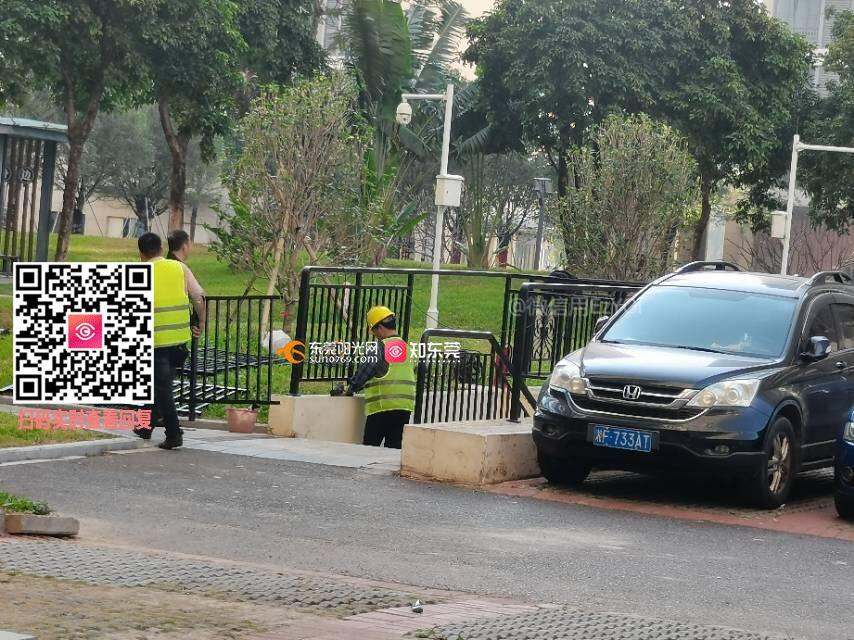 东莞市沙田镇民田安置小区这是什么工程啊,好好的护栏拆掉,重毅安装一模一样的的护栏,这是什么操作?沙田镇政府是否有没有监官小区内的改做?