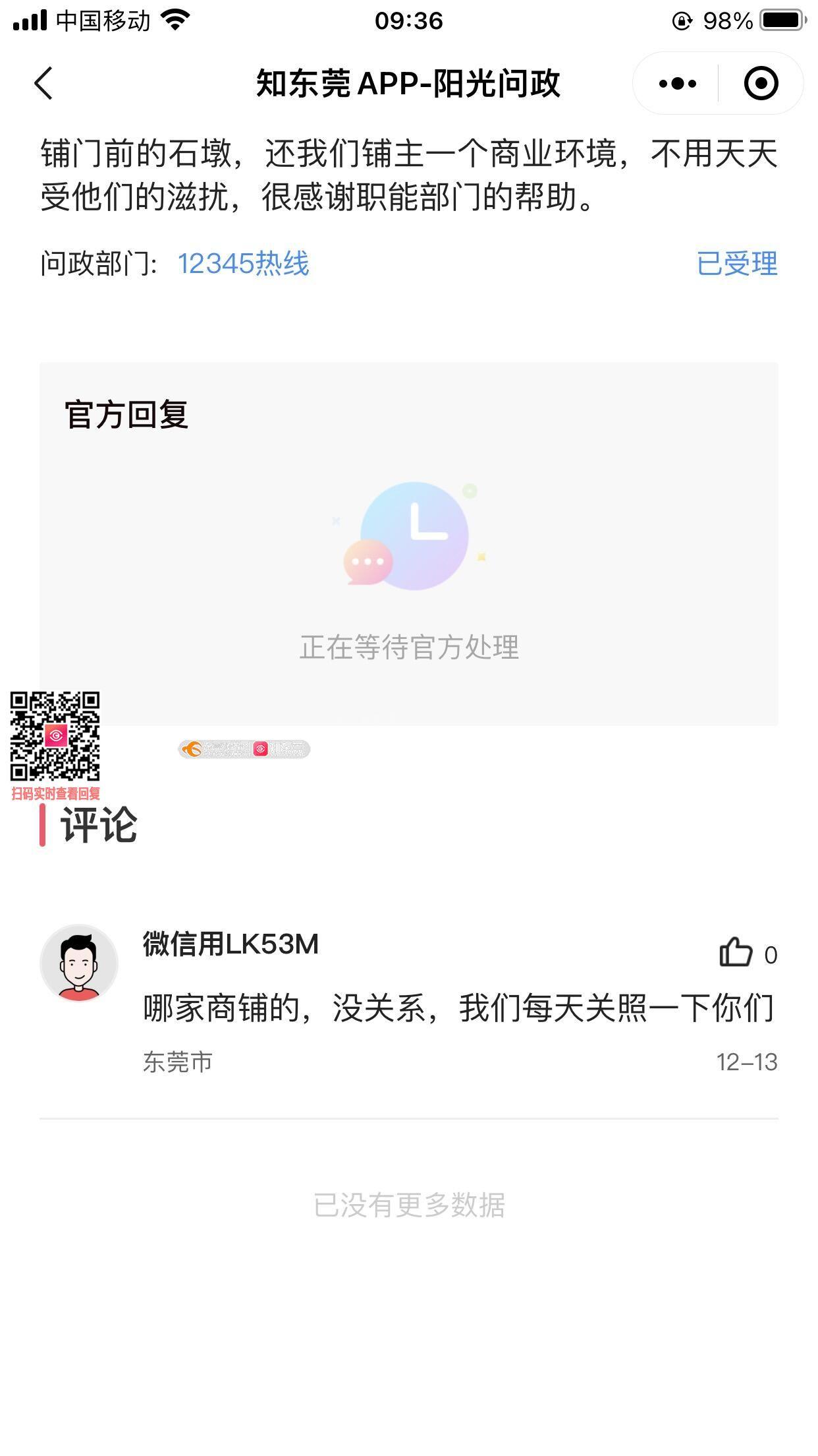 之前赞扬职能部门跟物业的文章疑似受到业主的恐吓。铺主感到不安,希望政府部门能成立委员会。