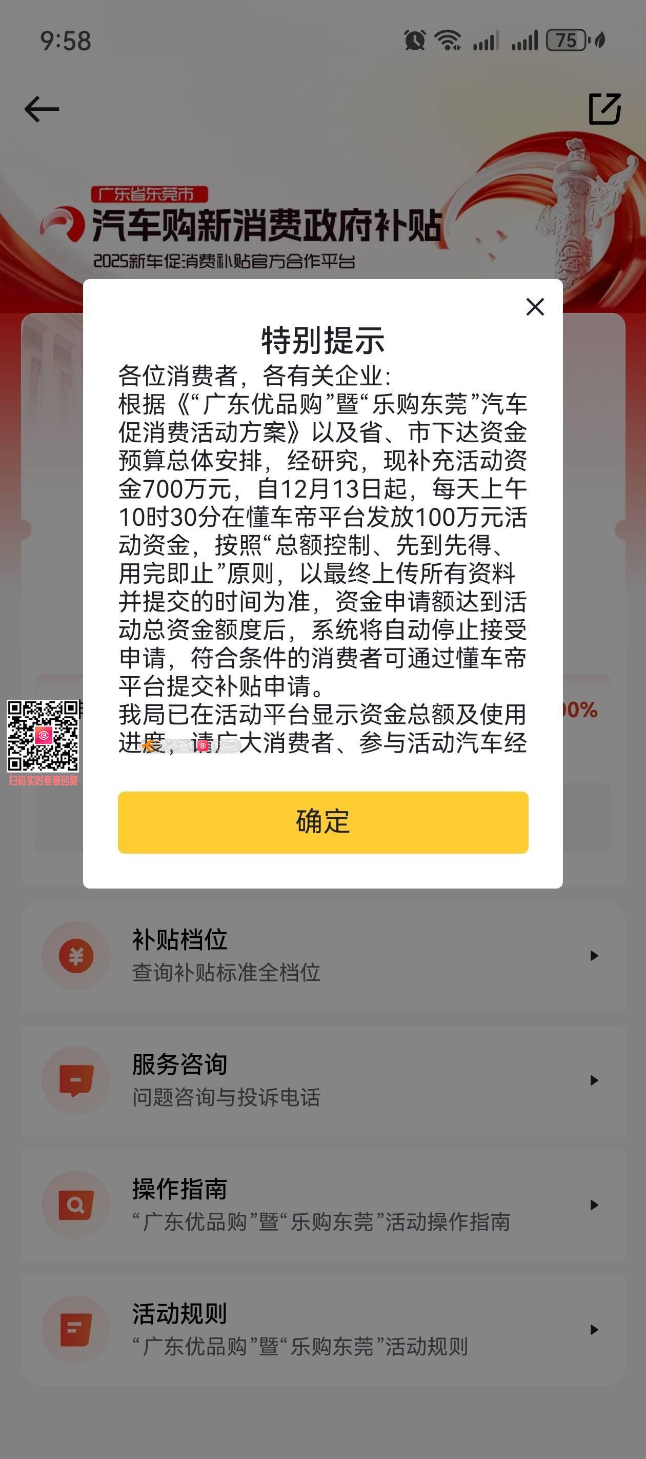 尊敬的市民朋友:您好,您反映的问题已收悉,现回复如下:根据上级文件要求,本轮活动对新车上牌地及消费者户籍地不作限制,在我市报名参与活动的商家购买新车且符合相关条件的消费者均可申领补贴。活动严格按照“总额控制、先到先得、用完即止”原则,以最终上传所有资料并提交的时间为准,资金申请额达到活动总资金额后,系统将自动停止接受申请。我局已对相关情况予以记录并反馈,后续如有最新活动调整,将通过活动官方平台等渠道及时发布。如有疑问,可于工作日8:30-12:00,14:00-17:30致电东莞市商务局市场规划与建设科,联系电话:0769-22997380、22817597。感谢您对我们工作的关注和支持!祝您工作顺利,生活愉快!