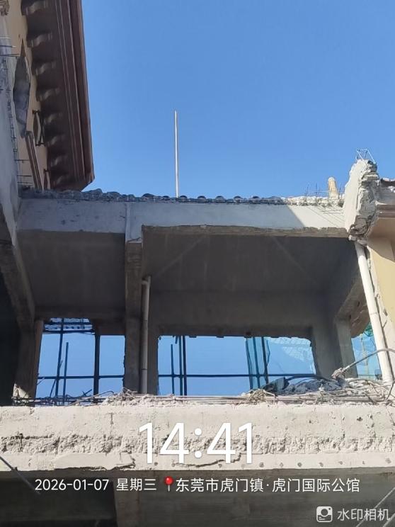 尊敬的市民,您好!您反映的问题已收悉,现回复如下:接投诉后,我分局于2026年1月7日派出执法人员联同物业管理人员到虎门镇国际公馆银湖别墅2区17栋101进行勘查,现场发现当事人正在拆除原有楼顶,执法人员现场责令当事人自行修复,整改进度将由物业管理公司进行监督,我分局将继续跟进。如有城市管理方面的问题,可致电东莞市城市管理和综合执法局虎门分局24小时值班电话:89328222或通过微信公众号“东莞城市管理”进行反映。 感谢您对城市管理工作的监督与支持!