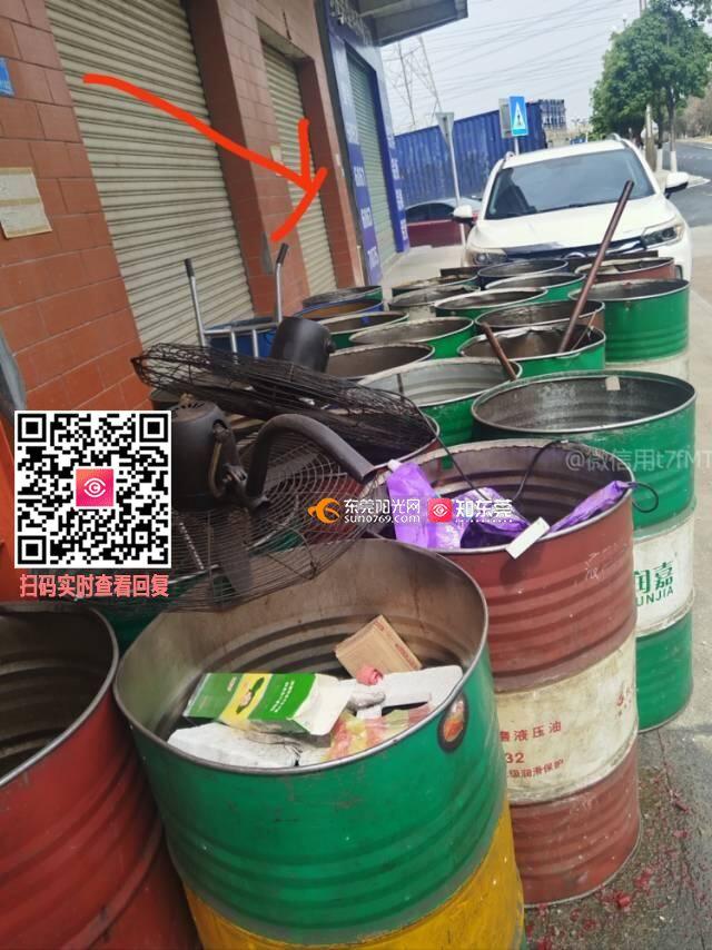 2026年3月16日,生态环境分局对该问题进行了调查,有关情况如下: 经核实,被投诉单位全称为“东莞市横沥元正鑫模具加工店”,位于生态路245号,从事五金模具加工业务,已领取工商营业执照,现场设有CNC机、空压机等生产设备。经现场核实,市民反映的废旧铁桶实际是用于装载干燥金属边角料和铁屑,不属于危险废物。鉴此,生态环境分局要求该单位加强一般固废储存管理,做好三防措施。下来,生态环境分局将继续跟进该单位的落实情况。投诉人如再有类似情形,可以直接致电生态环境分局83792925或直接添加横沥生态环境分局的信访微信号13392342250进行留言,以便获得快速有效跟进。处理情况已以短信形式反馈市民。