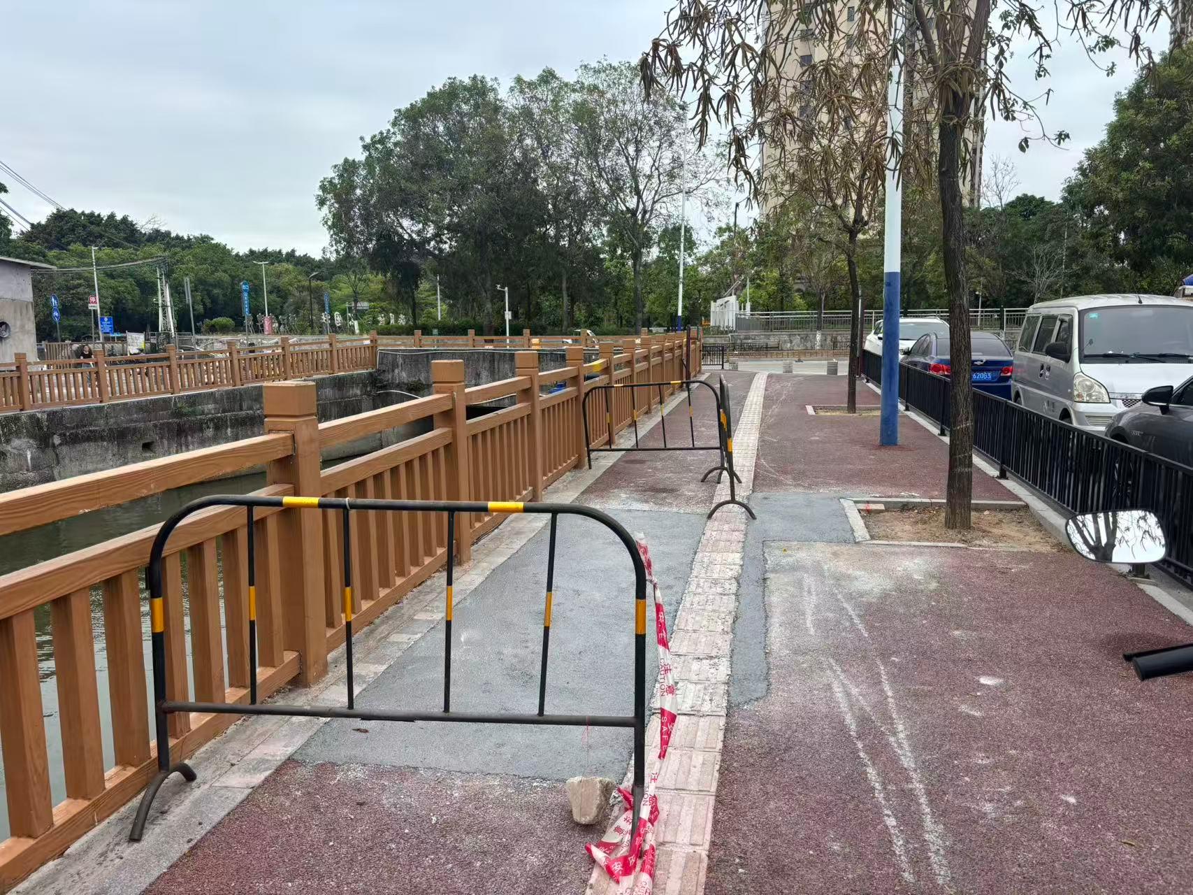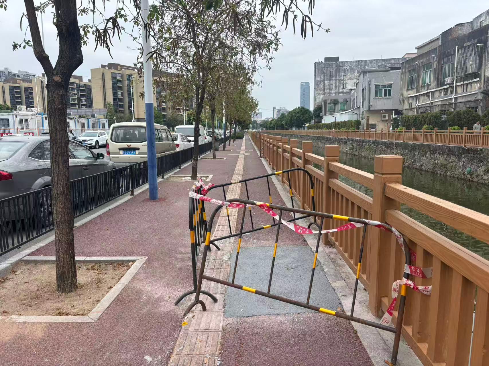 尊敬的市民,您好!您反映的问题已收悉,现回复如下:经现场核实,该位置属厚街镇2022年一河两岸环境整治建设工程第三标段,工程已完工并移交至属地社区管养。关于市民反映的人行道缺陷,我中心已协调相关施工单位进行修复,并已于3月20日完成。感谢您对我们工作的理解和支持!