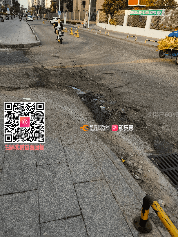 麻涌铜雀台一期与招商雍华府交叉路口,垃圾站旁边人行道道路破损,井盖凹陷,严重影响安全,请修复
