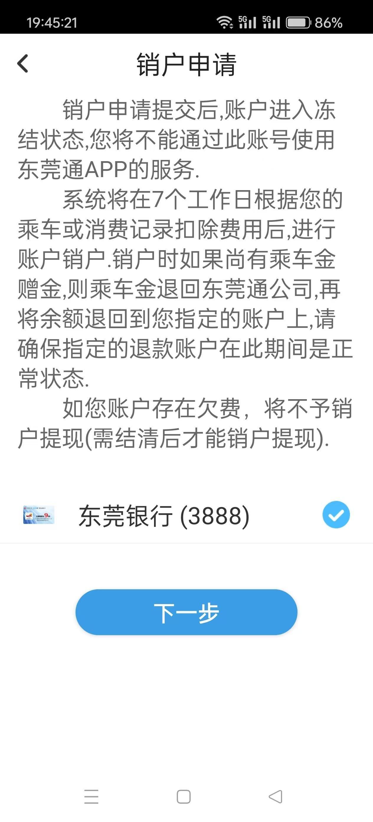 东莞通APP不能注销和退款
