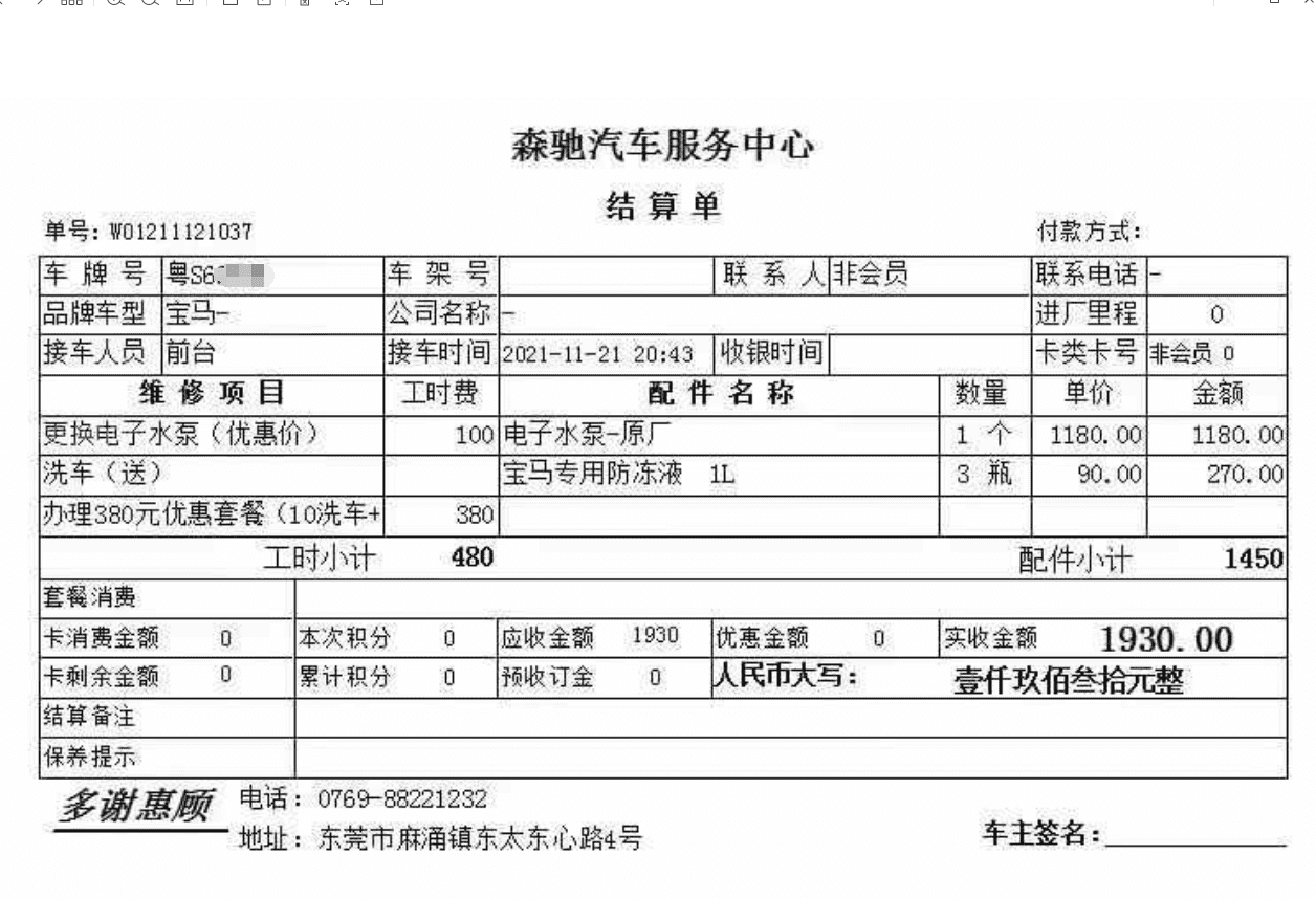 森驰汽车服务中心(麻涌店)预存洗车卡欺诈消费者