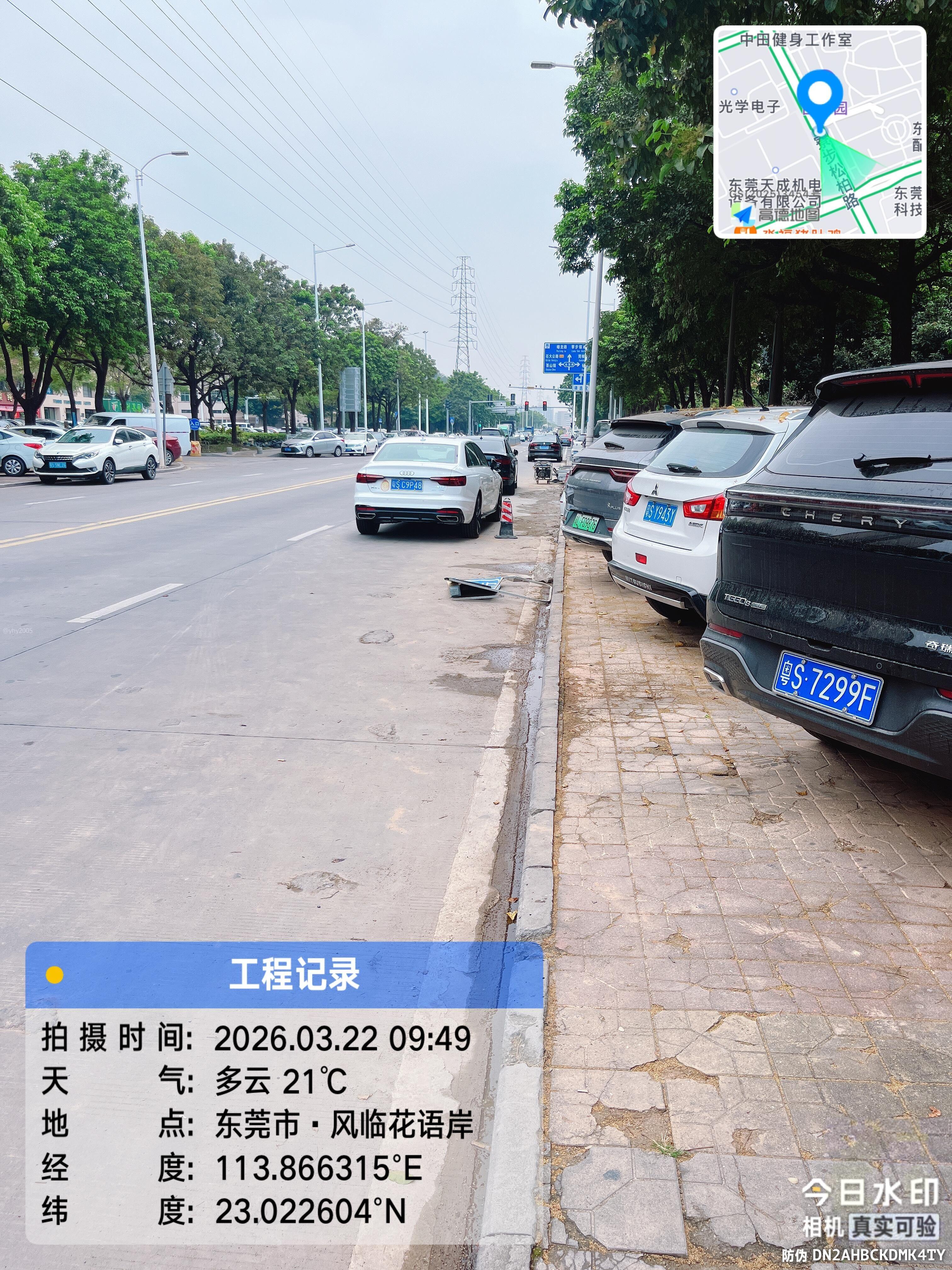 寮步镇华南工业城,风临花语岸、鼎峰品筑小区道路,本来是双向四车道,经常二边乱停车,造成早晚高峰期堵车严重,有的车直接停在红绿灯处