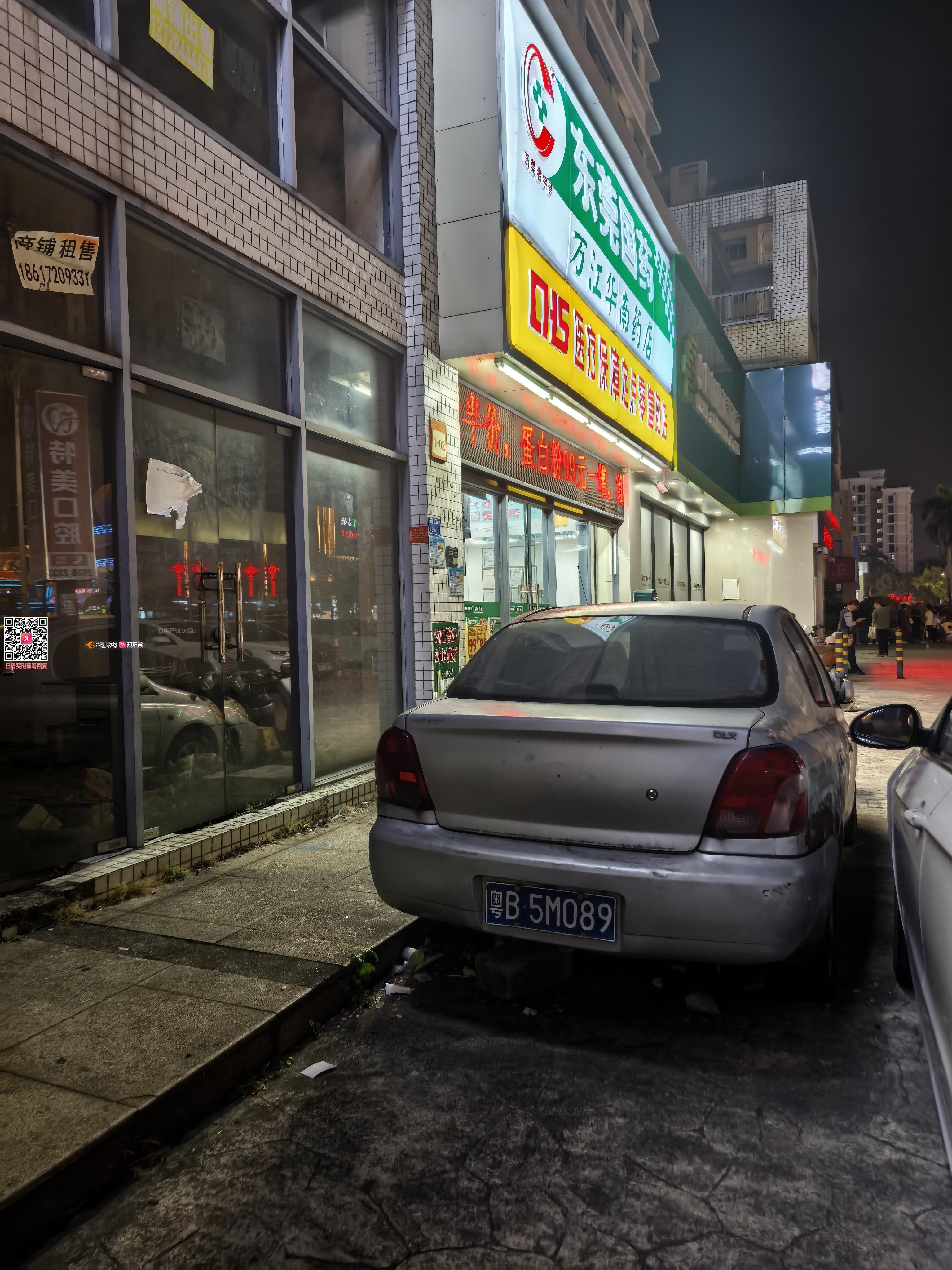 有一台僵尸车在盛世华南万江街道万道路万江段北3号140室之一门口()停放一台僵尸车多年,车牌号是粤B5M089,车身严重生锈,杂草丛生,轮胎瘪陷,车内有野猫等动物出没。僵尸车旁边是东莞国药万江华南店。影响车和行人安全,还挡住商铺门口。请挪走。