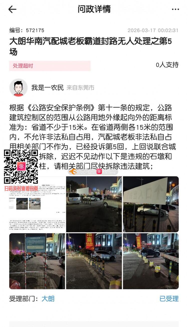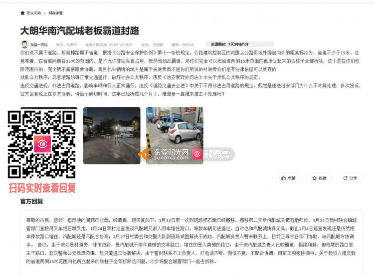 大朗华南汽配城老板霸道封路无人处理之第6场