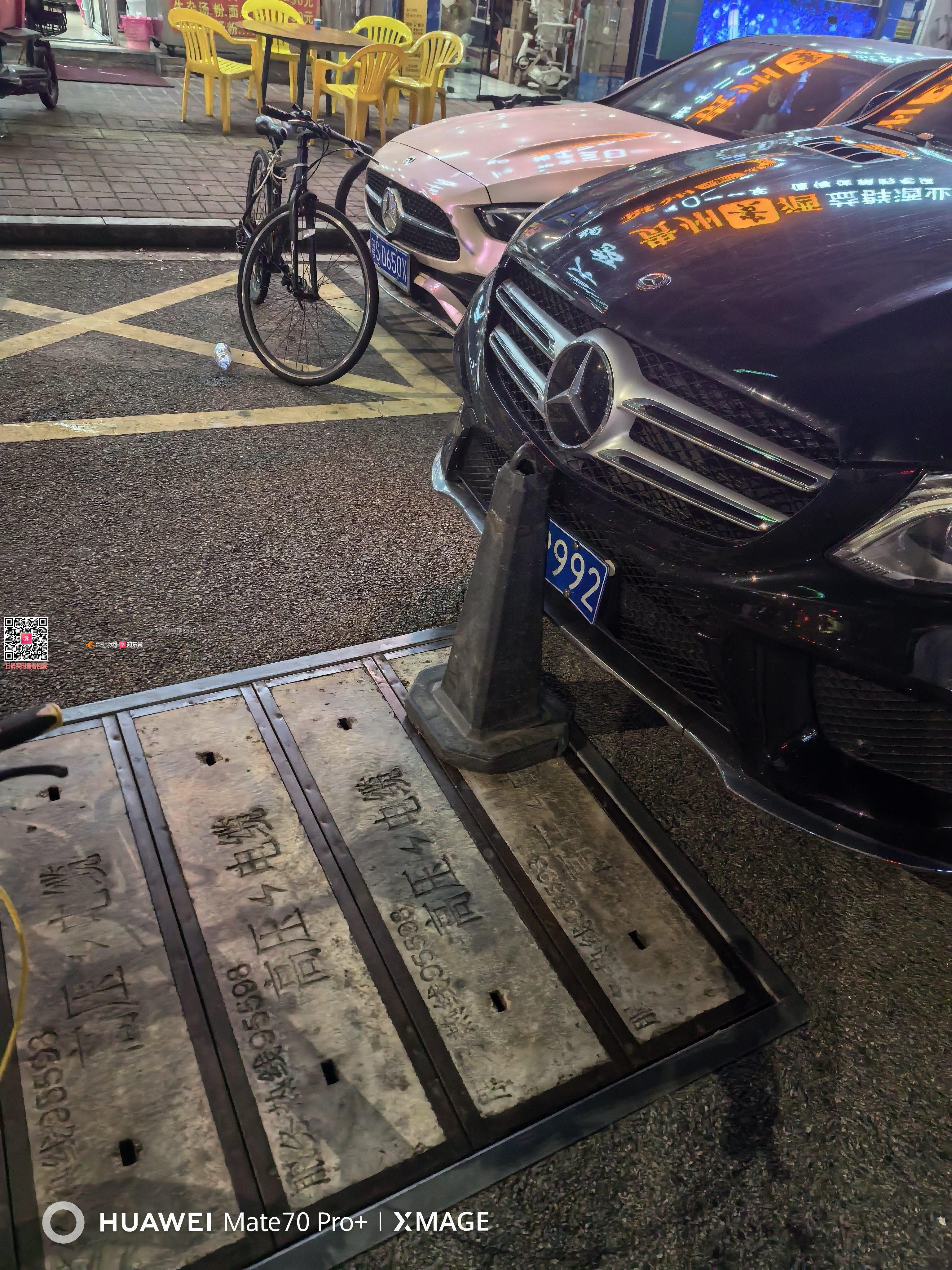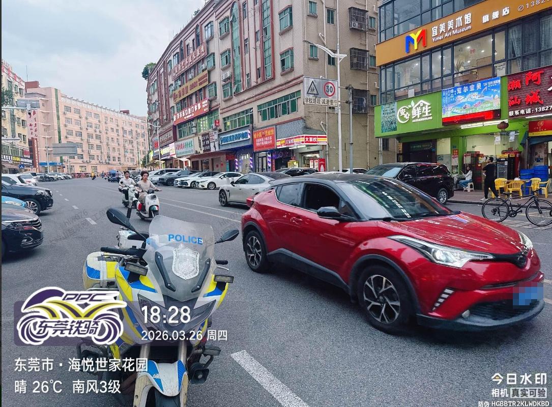时间:2026年3月25日16点~22点 地点:大岭山松湖春天西门西正路 事件:车辆长时间违停,旁边是违章自动抓拍,故意用雪糕桶遮挡车牌,逃避处罚