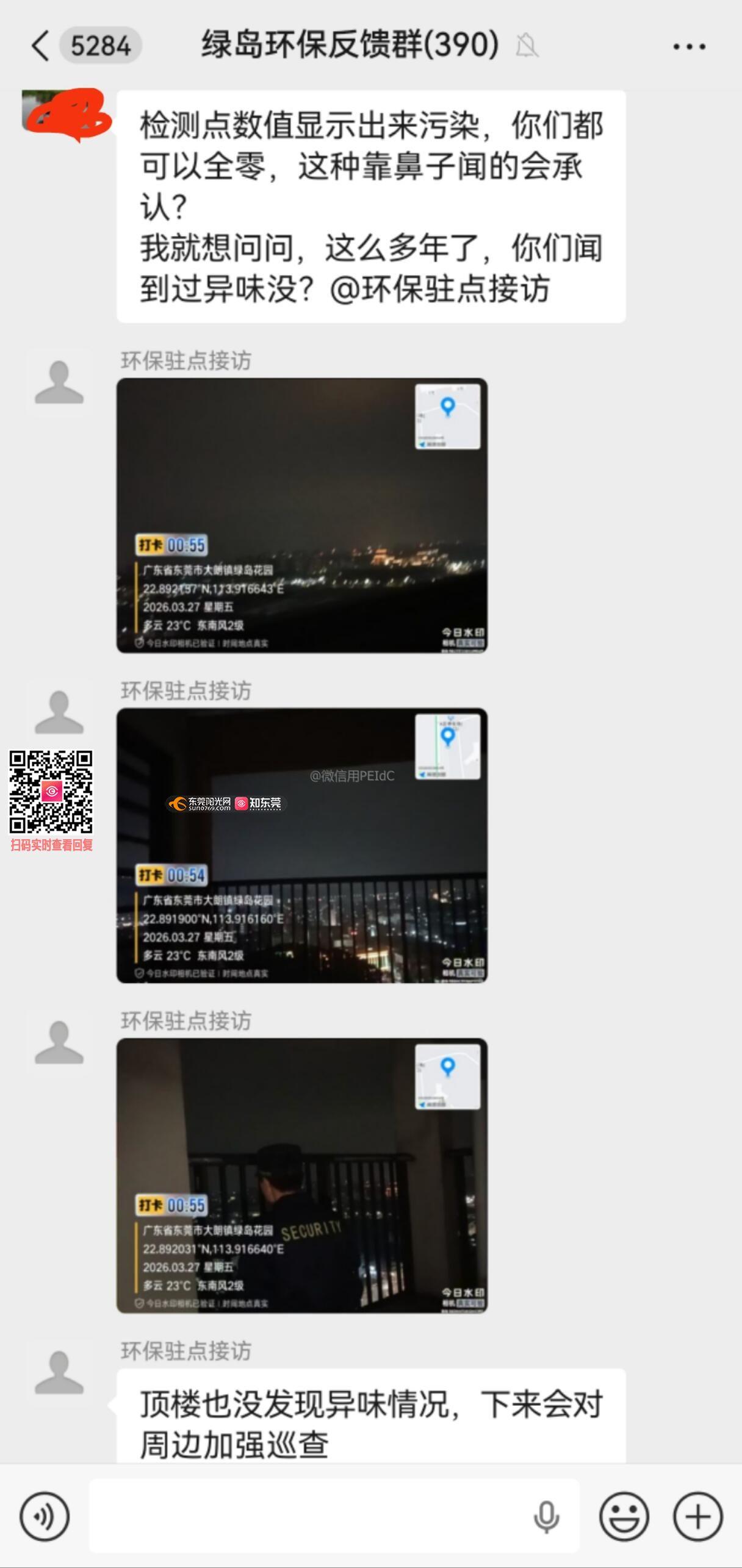 2026年3月26日晚22:50起,松山湖台科片区清澜山、绿岛花园小区空气异味严重,附近居民纷纷反馈。松山湖生态环境局驻点巡逻人员依旧搬出形式化工作流程(1、拍照打卡,2、说没闻到异味)敷衍群众反馈。27日一大早,小区群里又爆出一批孩子流鼻血不止。本人的孩子也在呼吸一晚上的化工废气后,早上流鼻血不止。 请问国家哪一条法规规定,环保驻点巡逻人员的鼻子有国家认证吗?长期以来,每次小区大多数居民闻到刺激性工业废气异味的时候,驻点巡逻人员都没闻到异味。巡查人员闻不到异味,怎么证明旁边工业废气没有扰民呢?驻点巡逻人员的身体素质和工作能力已经不能胜任该项巡查工作。松山湖生态环境局一手遮天,践踏人民健康生命安全,不顾成百上千个家庭的泣血诉求,昧着良心掩盖工业废气扰民事实。 再次请求上级政府部门严查松山湖生态环境懒政,掩盖事实真相的渎职行为。