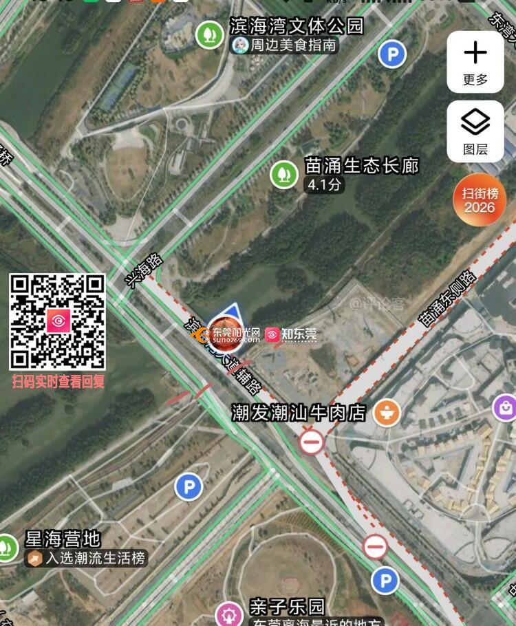 建议滨海湾大道苗涌桥设置桥下人行通道,方便滨海湾花海里的游客往返购物村