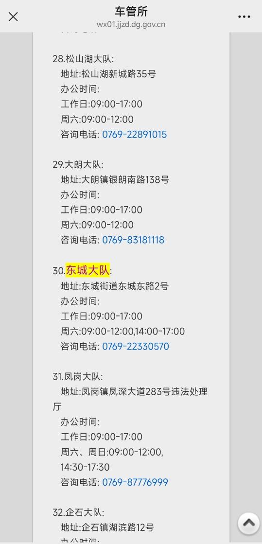 尊敬的市民,您好!您反映的问题已收悉,3月31日已联系您,现回复如下:感谢您对东城交管大队工作的监督和提醒!东城交管大队违法处理大厅咨询电话是0769-22330570,市民可通过东莞交警公众号-便民指南-办事指引-电动自行车违法处理网点信息对东莞市所有交管大队违法处理大厅的地址和电话进行咨询。您拨打电话所显示的信息可能是手机软件被人进行标注,该违法信息是东城交管大队发送。感谢您对我们工作的理解!