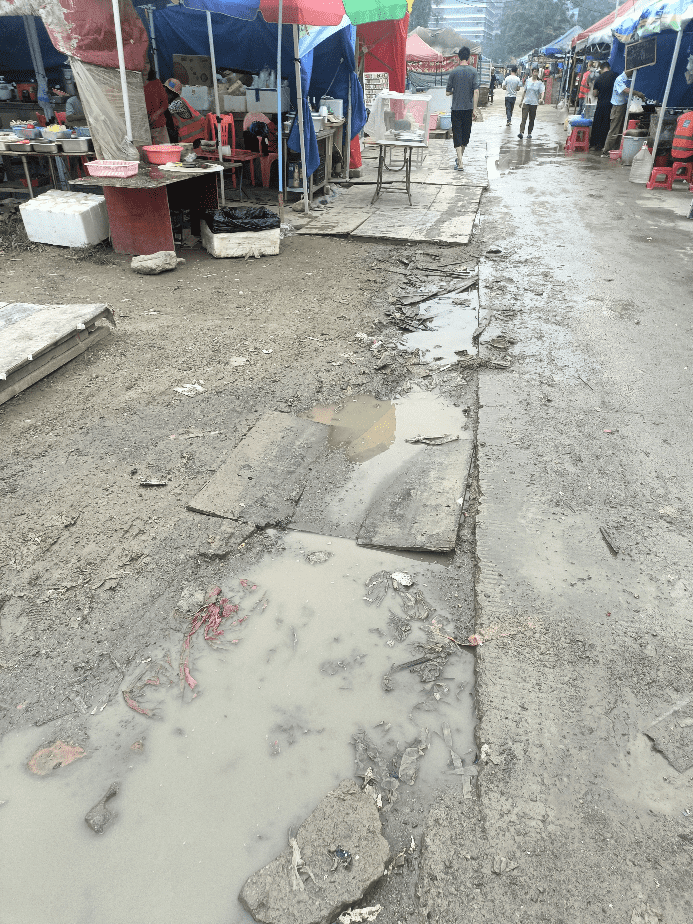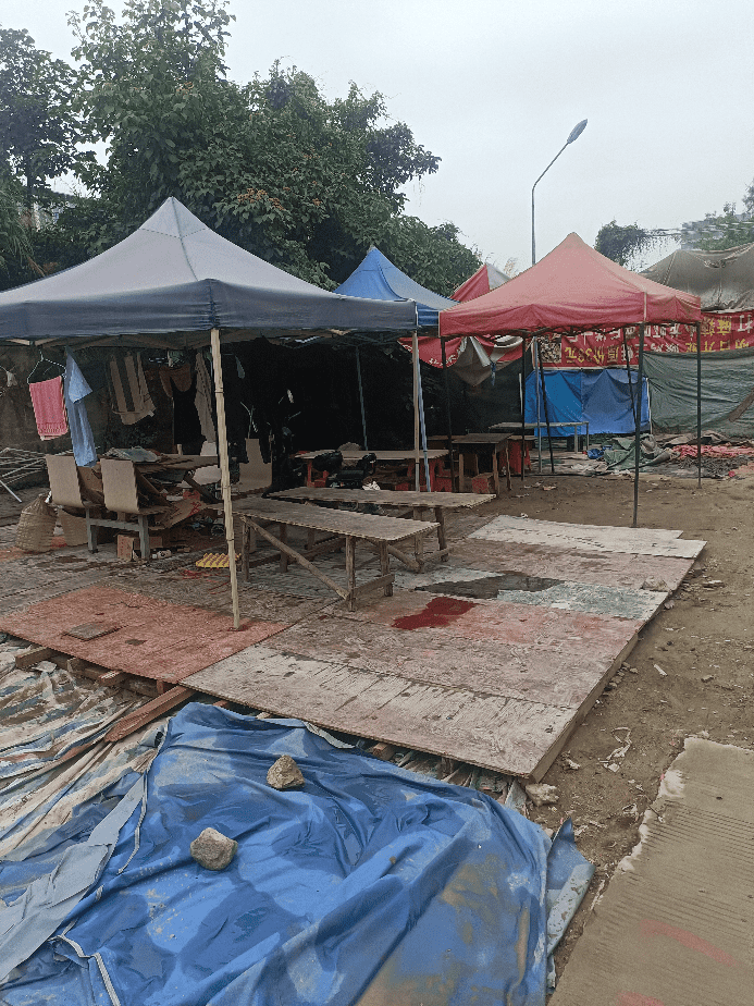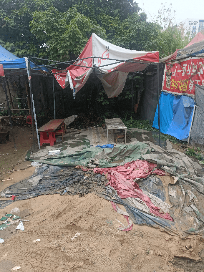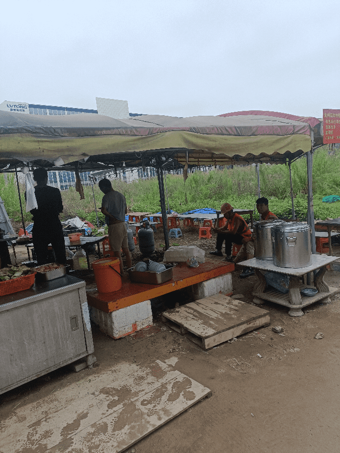 工人生活区门口,存在摆摊人员非法经营,占道经营,环境极差,用冻肉,僵尸肉,食材不清洗等食品安全问题,请有关部门早日清除危害