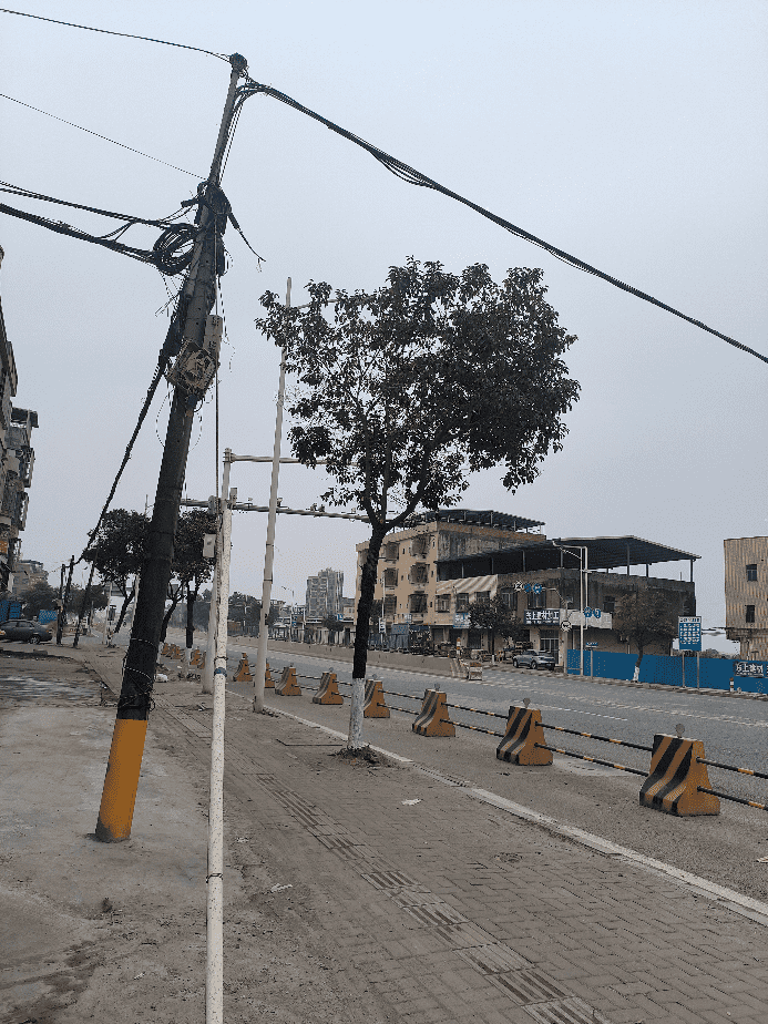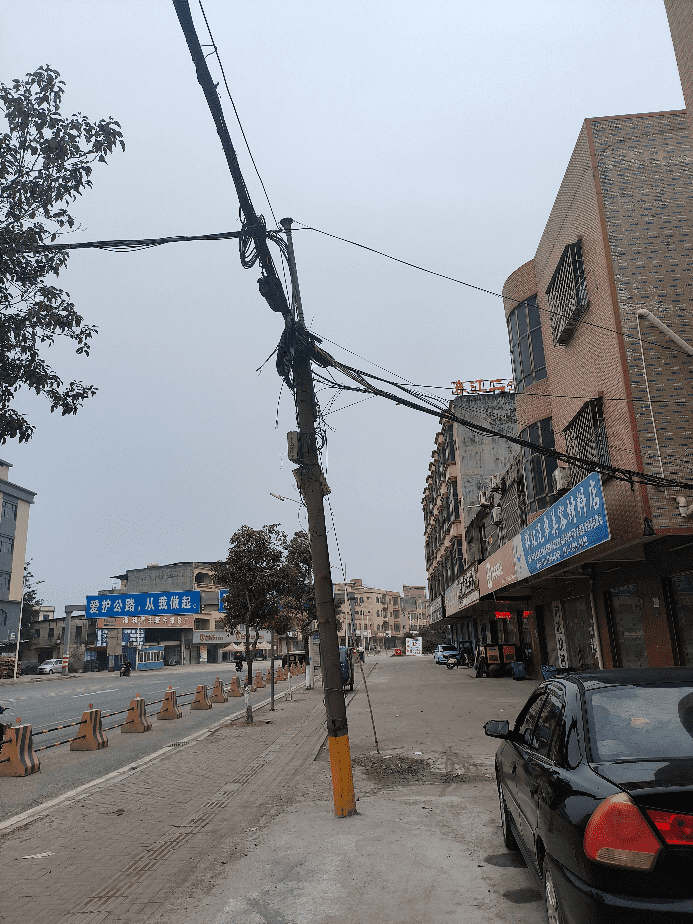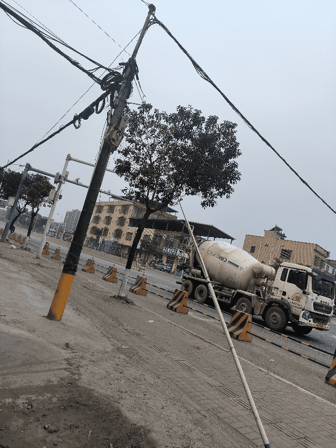 #全域文明曝光台#东莞市桥头镇新建混凝士公司西北(S120)即:东莞市桥头镇桥头桥东路827号门口,路面出现凹陷,货车经过产生较大噪音,还对周边房子产生震动,严重影响生活中的睡眠质量等,还有人行道路边上有一条电线杆已经严重倾斜,以前有二条铁线辅助拉住,现已经断了一条,长时间高负荷的电线量担心电线杆难以承负,希望有关部门能够处理下!