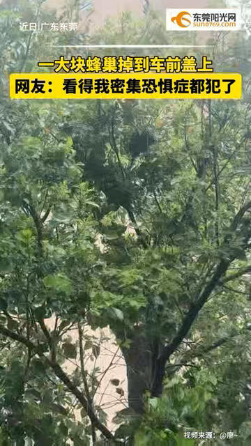 一大块#蜂巢 掉落到车前盖上,网友:这是#排蜂 凶得很,小心哦……#野蜂