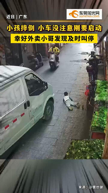 小孩不小心摔倒,旁边小车没注意刚要启动,幸好#外卖小哥 发现及时叫停 。#儿童安全
