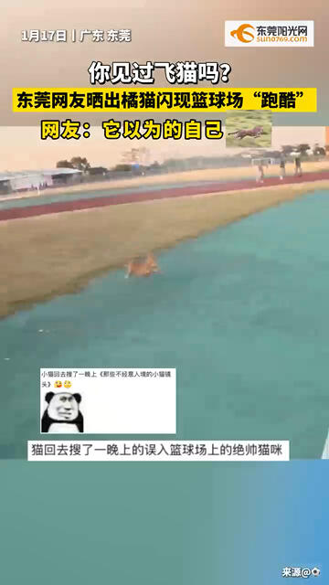 你见过飞猫吗?东莞网友晒出橘猫闪现#篮球场 “#跑酷 ”,网友:它以为的自己是只...#猫咪的迷惑行