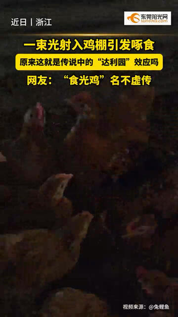 一束光从鸡棚顶射入引发啄食,鸡:我吃了个啥?网友:这就是传说中的“达利园”效应吧---#丁达尔光
