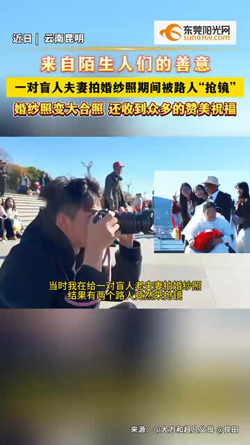 云南昆明一对盲人夫妻拍#婚纱照 期间被路人“抢镜” ,婚纱照变大合照,还收到众多的赞美祝福。#暖心