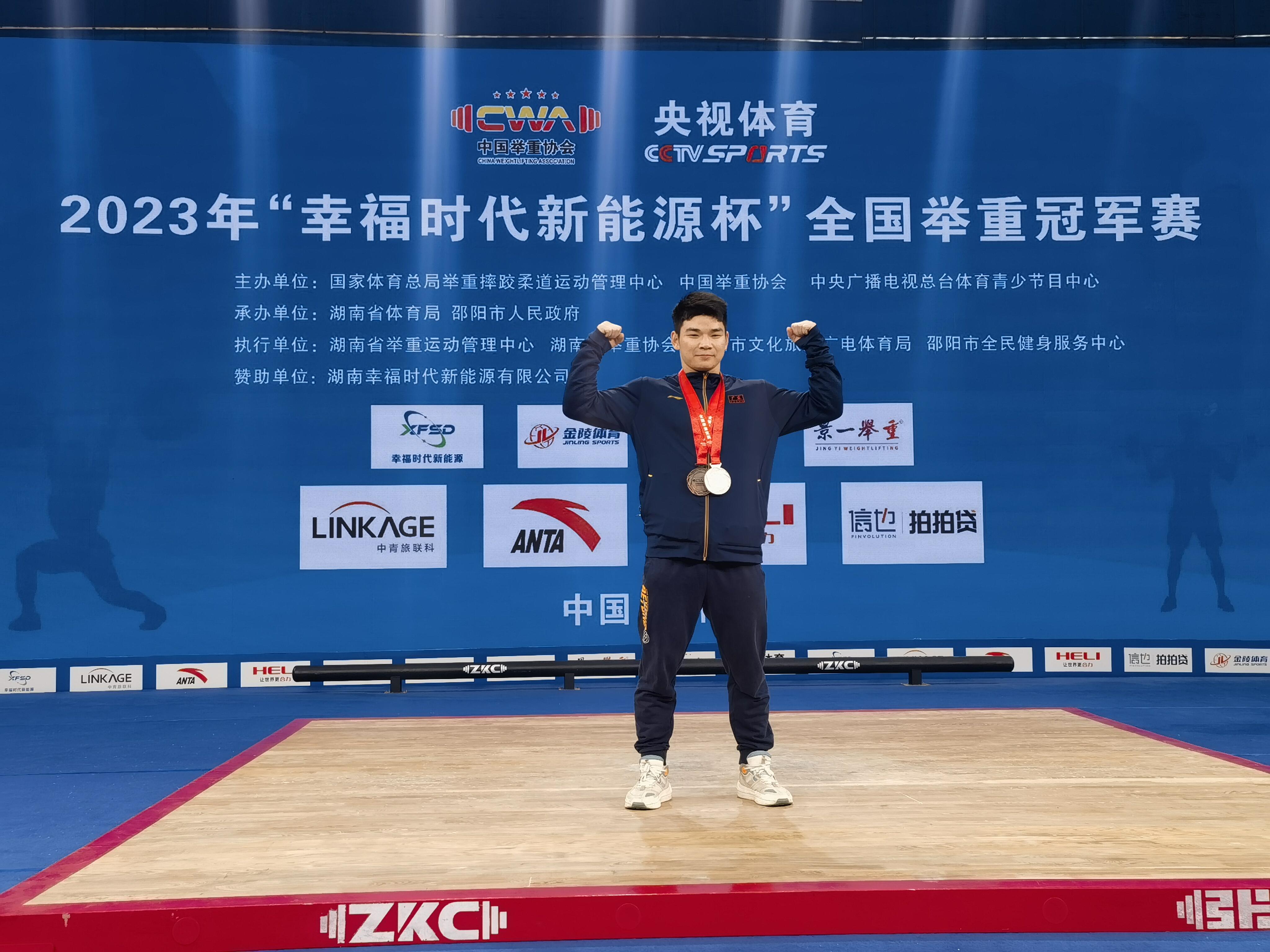 石龙举重运动员吴海丰获全国举重冠军赛男子73级公斤级挺举第二名和总成绩第三名!