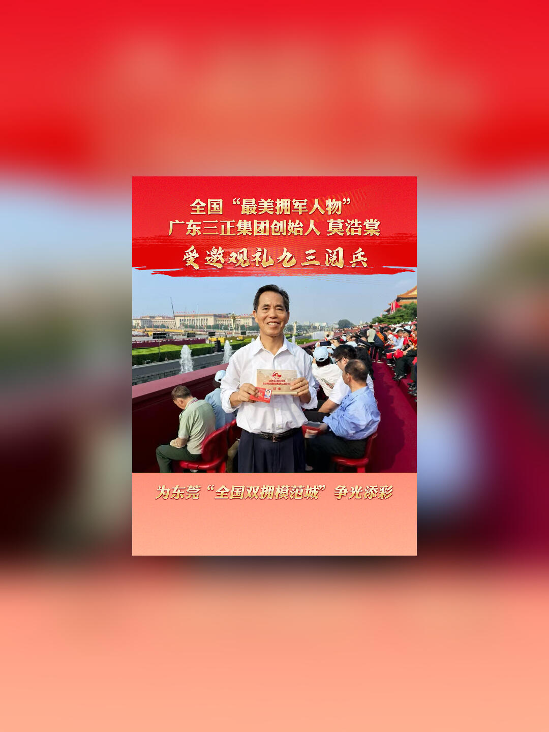 【莞视频】全国“最美拥军人物”广东三正集团创始人莫浩棠受邀观礼九三阅兵