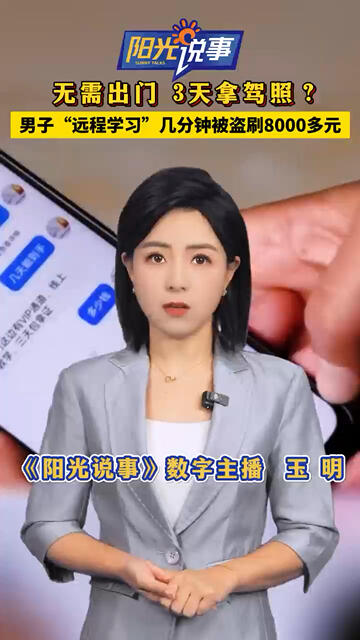 紧急提醒!别信“免考试线上学驾照”!四川一男子线上学驾照几分钟被盗刷8000多元#阳光说事#考驾照