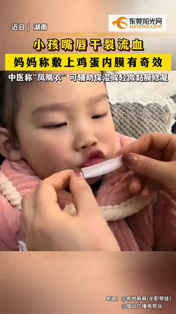 小孩嘴唇干裂流血,妈妈称敷上鸡蛋内膜有奇效。#生活小妙招