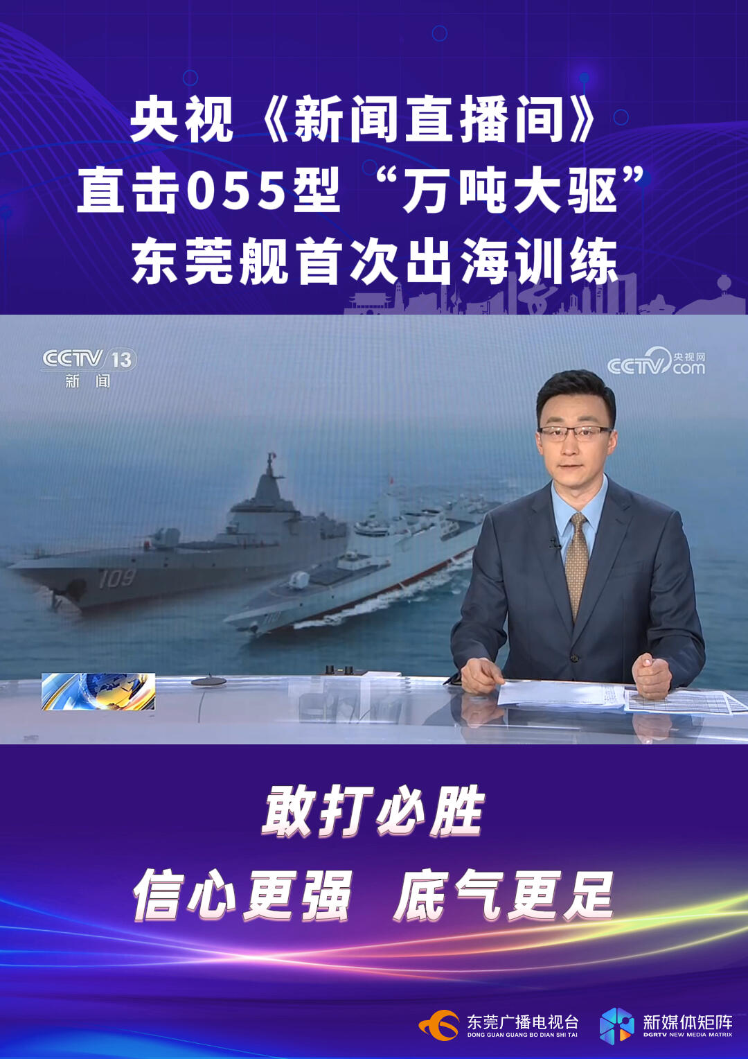 【莞视频】央视《新闻直播间》直击055型“万吨大驱” 东莞舰首次出海训练