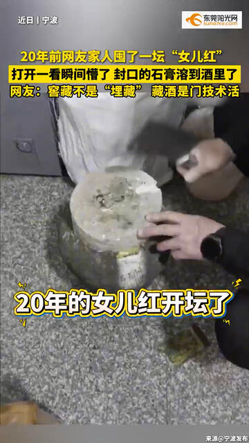 20年前网友家人囤了一坛“#女儿红 ”,打开一看瞬间懵了,封口的石膏溶到酒里了...